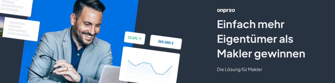 onpreo liefert Ihnen die Lösung. Mit individuellen Werbemitteln, Landingpages, einer kompletten CRM-System Lösung sowie Vermarktungspreisfinder und Deal-Funnel erhalten Sie einen Partner, welcher alle Bereiche für Sie übernimmt.